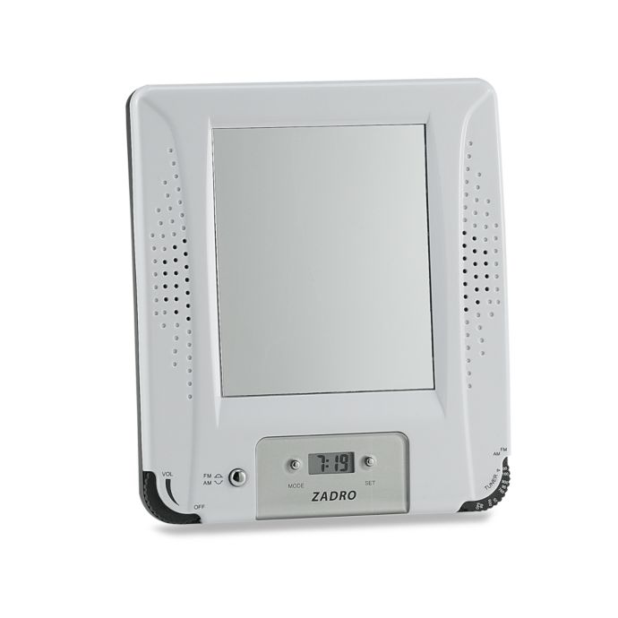 AM/FM Shower Radio with Fog Free Mirror and Digital Clock Bed Bath